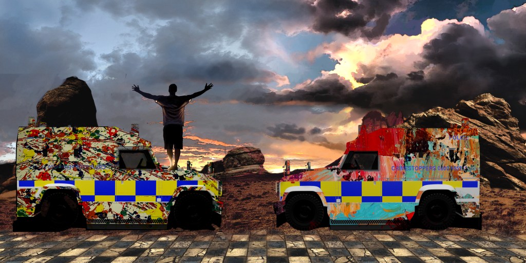 Barricade 1: Digital print on foam board, 2019, 4ft x 3ft, in the collection of the Northern Ireland Arts Council.