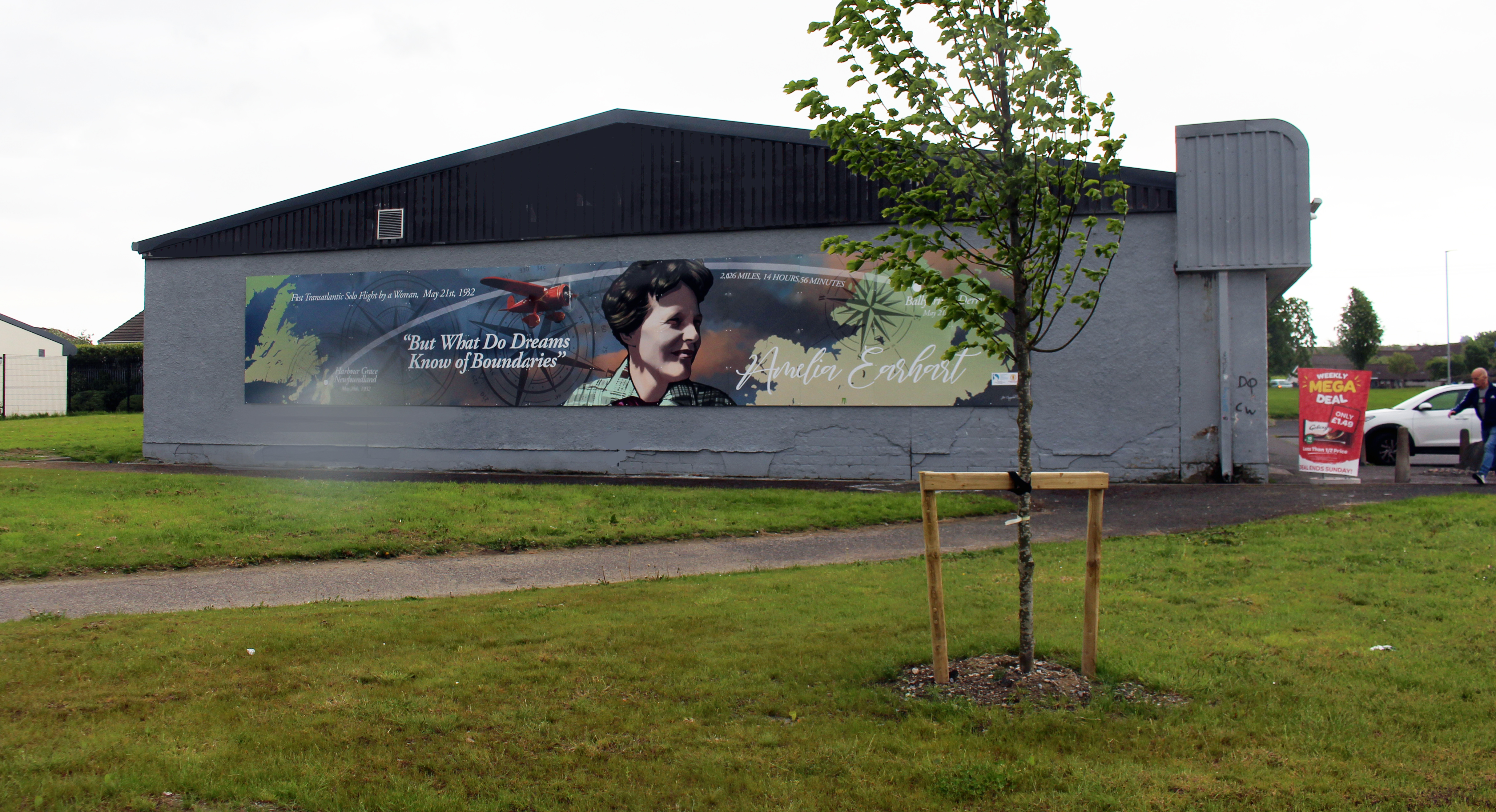 The mural by artist Joe Campbell, “But what do dreams know of boundaries” situated at the Galliagh Co-op in Derry. July 2022.Mural 40ft x 8ft (320 sq ft)
