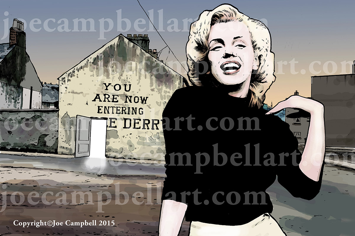 The images will be digital pieces, rendered in my comic book style and will feature Free Derry Corner, media icons, cultural juxtapositions designed to make the viewer look and think.